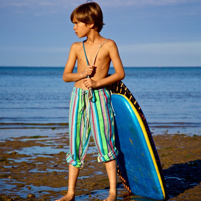 Our iconic kikoy pull-ons lighten up any day! Relaxed fit with a draw string waist, made in the happy, sunshine kikoy fabrics that make them essential for beachside or bedside. Keep your adventures bright and bold!